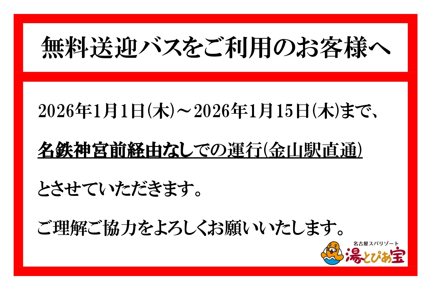 無料送迎バス『名鉄神宮前駅』停留所新設のお知らせ