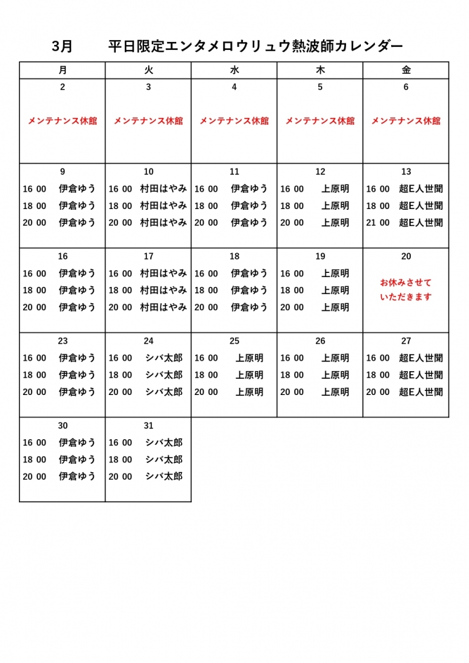 毎週火曜日を担当しておりました芸人の「村田はやみ」さんが、